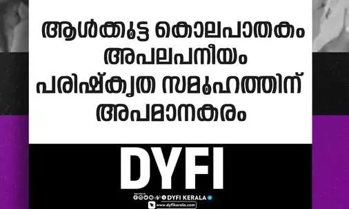 ആള്ക്കൂട്ട കൊലപാതകം അപലപനീയം, പരിഷ്കൃത സമൂഹത്തിന് അപമാനകരം; ഡിവൈഎഫ്ഐ