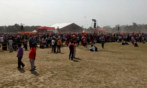 വലിയ മൈതാനം മുള ഉപയോഗിച്ച് പ്ലോട്ടുകളായി തിരിച്ച് ജനങ്ങള് ഒരിടത്തുതന്നെ കൂടിനില്ക്കുന്നത് ഒഴിവാക്കി അവരെ ചിതറിക്കുന്ന ശൈലിയാണ് പരീക്ഷിച്ചതെങ്കിലും അതും വിജയിച്ചില്ല. പല പ്ലോട്ടുകളിലും ആരും ഉണ്ടായിരുന്നില്ല. അതേസമയം വേദിക്കരികെ നിന്ന് എടുക്കുന്ന ഫോട്ടോകള് ജനങ്ങള് ഉള്ളതായി തോന്നുകയും ചെയ്യും. മറു ഭാഗത്തുനിന്നുള്ള ഫോട്ടോകള് പല മാധ്യമങ്ങളും പുറത്തുവിട്ടിട്ടുണ്ട്.