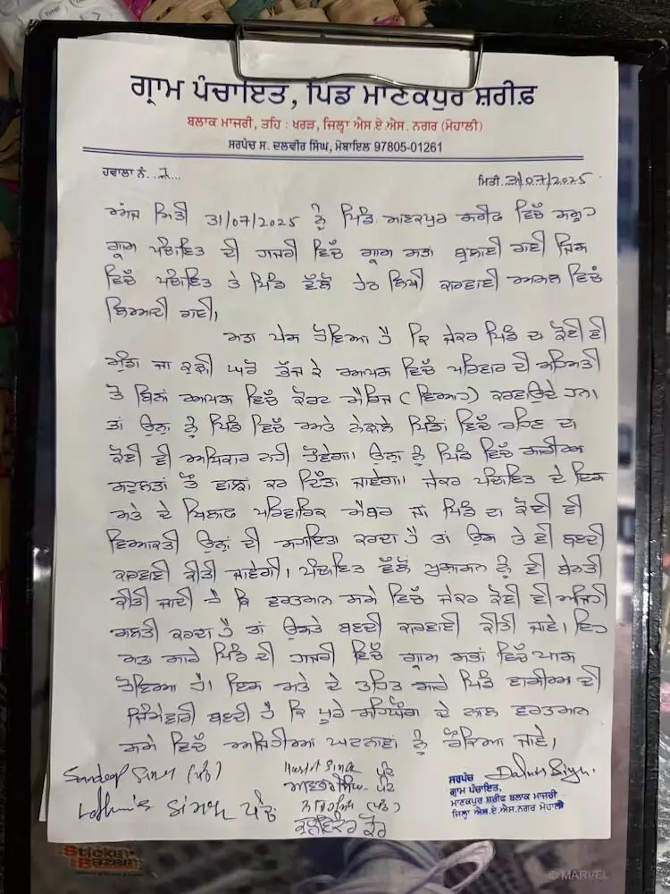 'ഇത് ഒരു ശിക്ഷയല്ല, മറിച്ച് നമ്മുടെ പാരമ്പര്യങ്ങളും മൂല്യങ്ങളും സംരക്ഷിക്കുന്നതിനുള്ള ഒരു പ്രതിരോധ നടപടിയാണ്,' ഗ്രാമ സര്പഞ്ച് ദല്വീര് സിങ് പറഞ്ഞു.