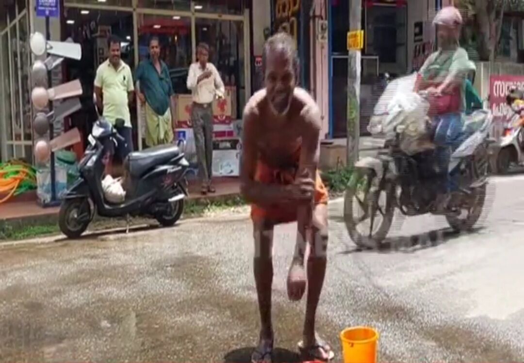 റോഡില് കുളിച്ച് പ്രതിഷേധവുമായി മോഹനന്