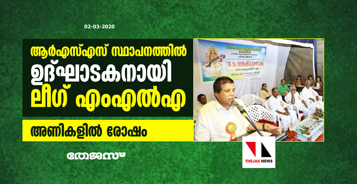 ആര്എസ്എസ് സ്ഥാപനത്തില് ഉദ്ഘാടകനായി ലീഗ് എംഎല്എ; അണികളില് രോഷം