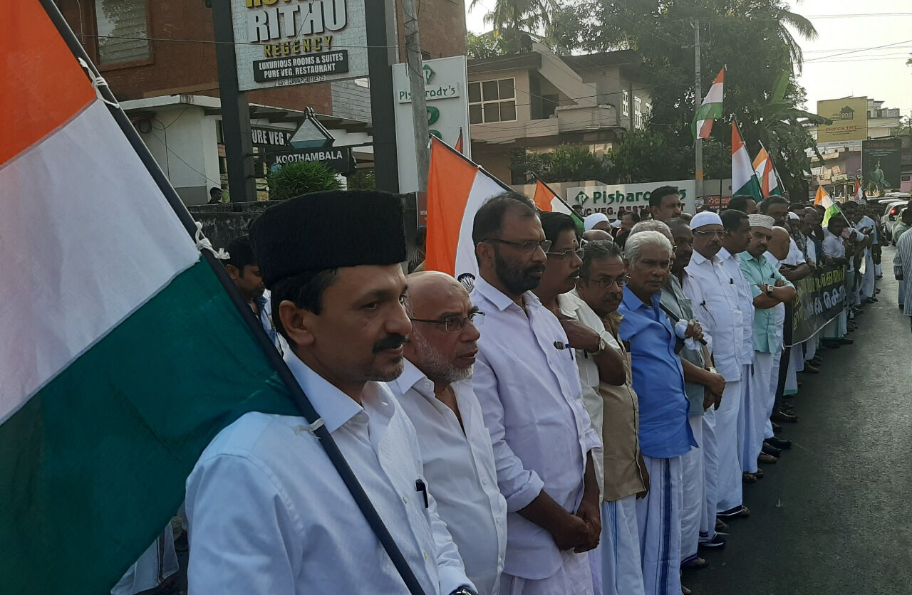 സ്ത്രീകളും കുട്ടികളുമടക്കം ആയിരങ്ങള് അണിനിരന്ന ദേശ രക്ഷാ മതിലില് മുസ്്ലിംലീഗ് ജില്ലാ പ്രസിഡന്റ് പാണക്കാട് സയ്യിദ് സാദിഖലി ശിഹാബ് തങ്ങള് ആദ്യ കണ്ണിയായി. സംസ്ഥാന മുസ്്ലിംലീഗ് ജനറല് സെക്രട്ടറി കെ പി എ മജീദ് രണ്ടാമതും ഡിസിസി പ്രസിഡന്റ് വി വി പ്രകാശ് മൂന്നാമതും കണ്ണിചേര്ന്നു. ഇന്ത്യന് നാഷണല് കോണ്്ഗ്രസ് ഉള്പെടെ വിവിധ സംഘടനകള് അഭിവാദ്യമര്പ്പിച്ചു.