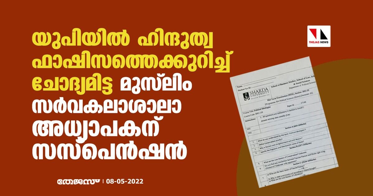 യുപിയില് ഹിന്ദുത്വഫാഷിസത്തെക്കുറിച്ച് ചോദ്യമിട്ട മുസ് ലിം സര്വകലാശാലാ അധ്യാപകന് സസ്പെന്ഷന്