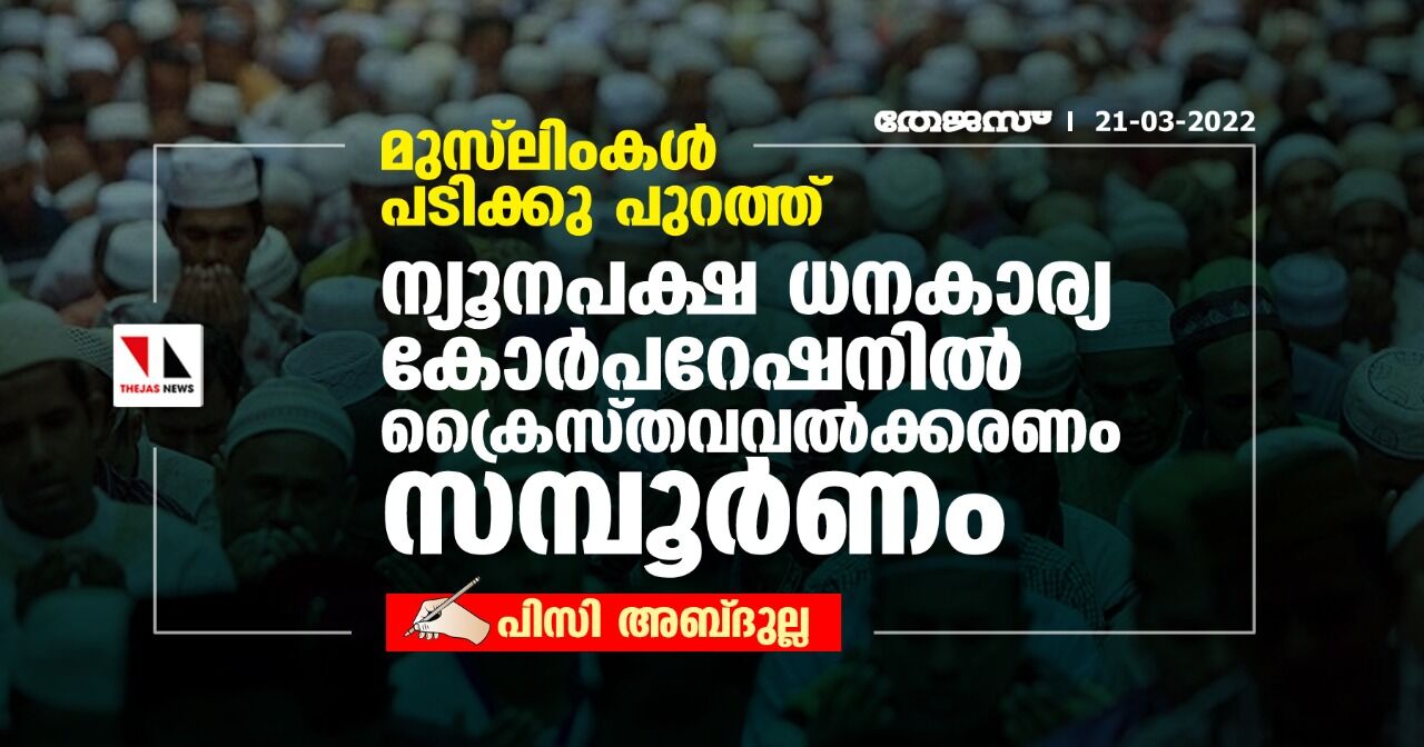മുസ്ലിംകള് പടിക്കു പുറത്ത്; ന്യൂനപക്ഷ ധനകാര്യ കോര്പറേഷനില് ക്രൈസ്തവവല്ക്കരണം സമ്പൂര്ണം