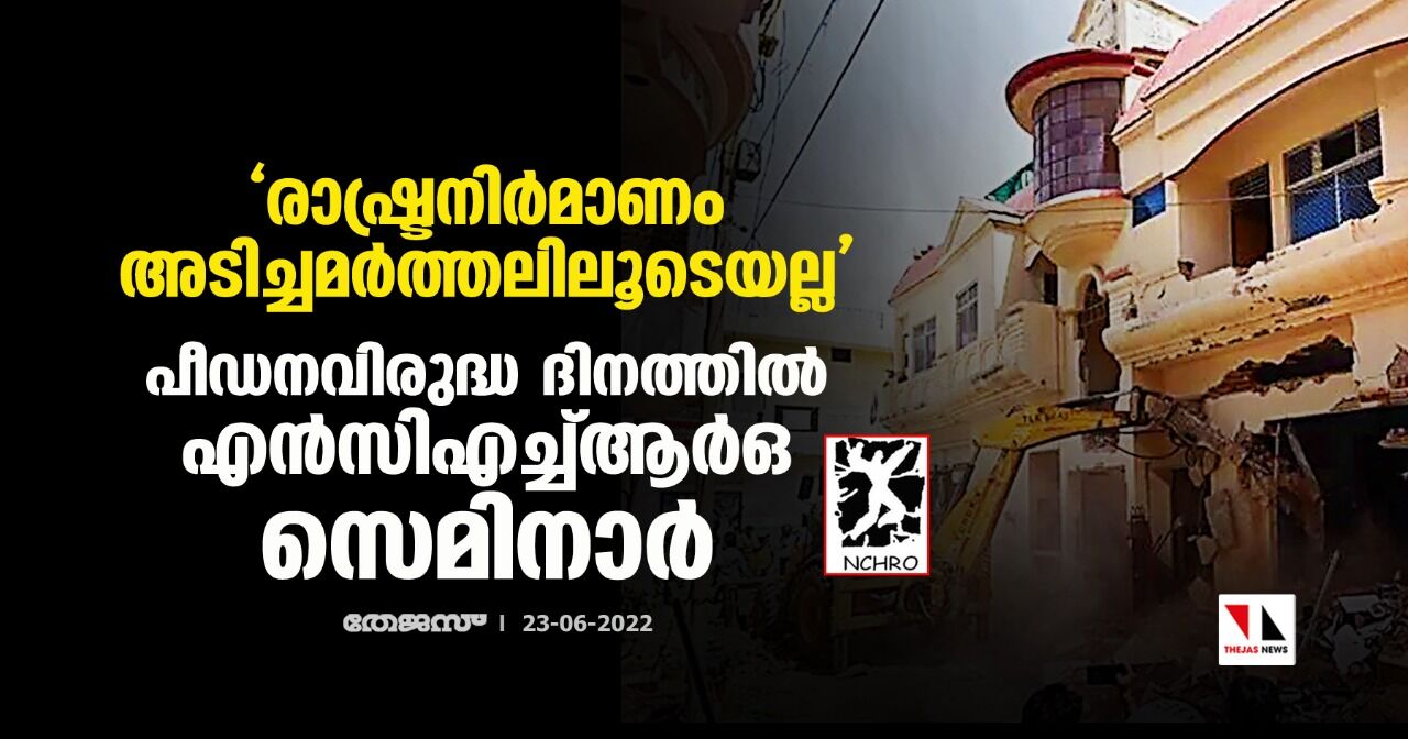 'രാഷ്ട്രനിര്മാണം അടിച്ചമര്ത്തലിലൂടെയല്ല': പീഡനവിരുദ്ധ ദിനത്തില് എന്സിഎച്ച്ആര്ഒ സെമിനാര്