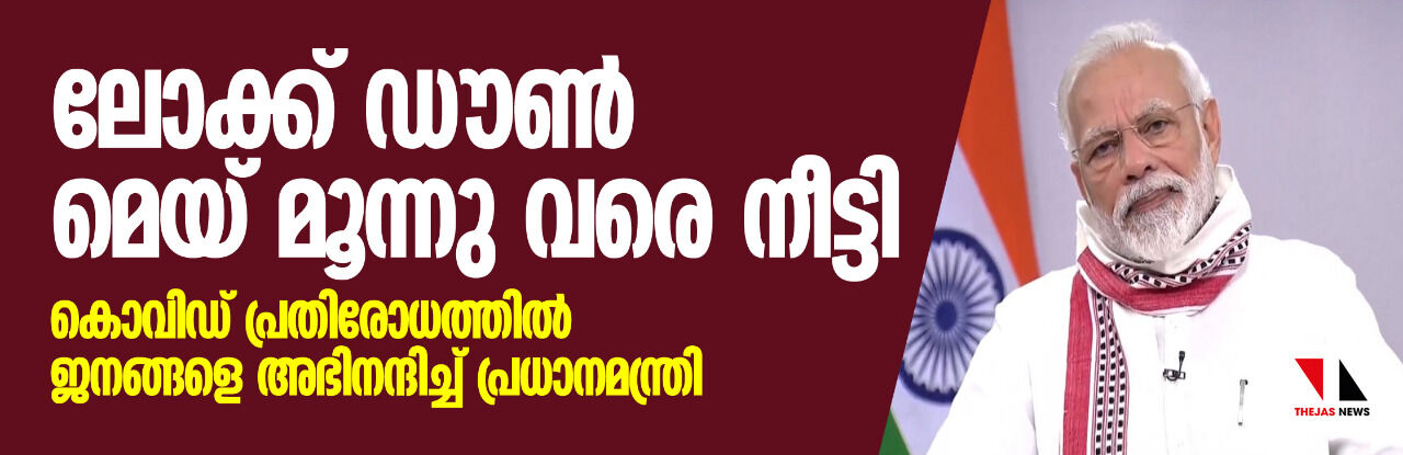 ലോക്ക് ഡൗണ് മെയ് മൂന്നു വരെ നീട്ടി; കൊവിഡ് പ്രതിരോധത്തില് ജനങ്ങളെ അഭിനന്ദിച്ച് പ്രധാനമന്ത്രി