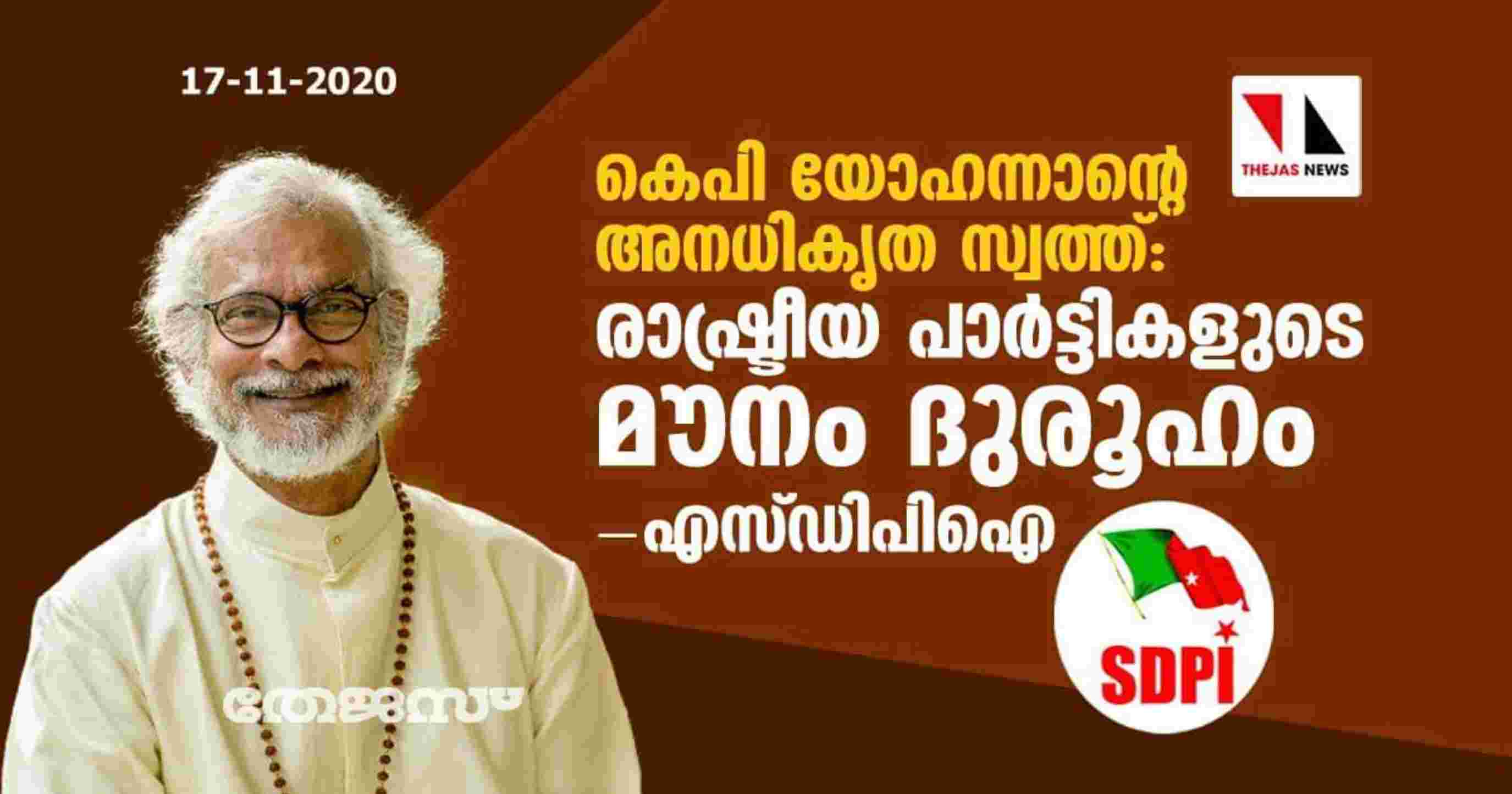 കെ പി യോഹന്നാന്റെ അനധികൃത സ്വത്ത്: രാഷ്ട്രീയ പാര്ട്ടികളുടെ മൗനം ദുരൂഹം- എസ് ഡിപിഐ