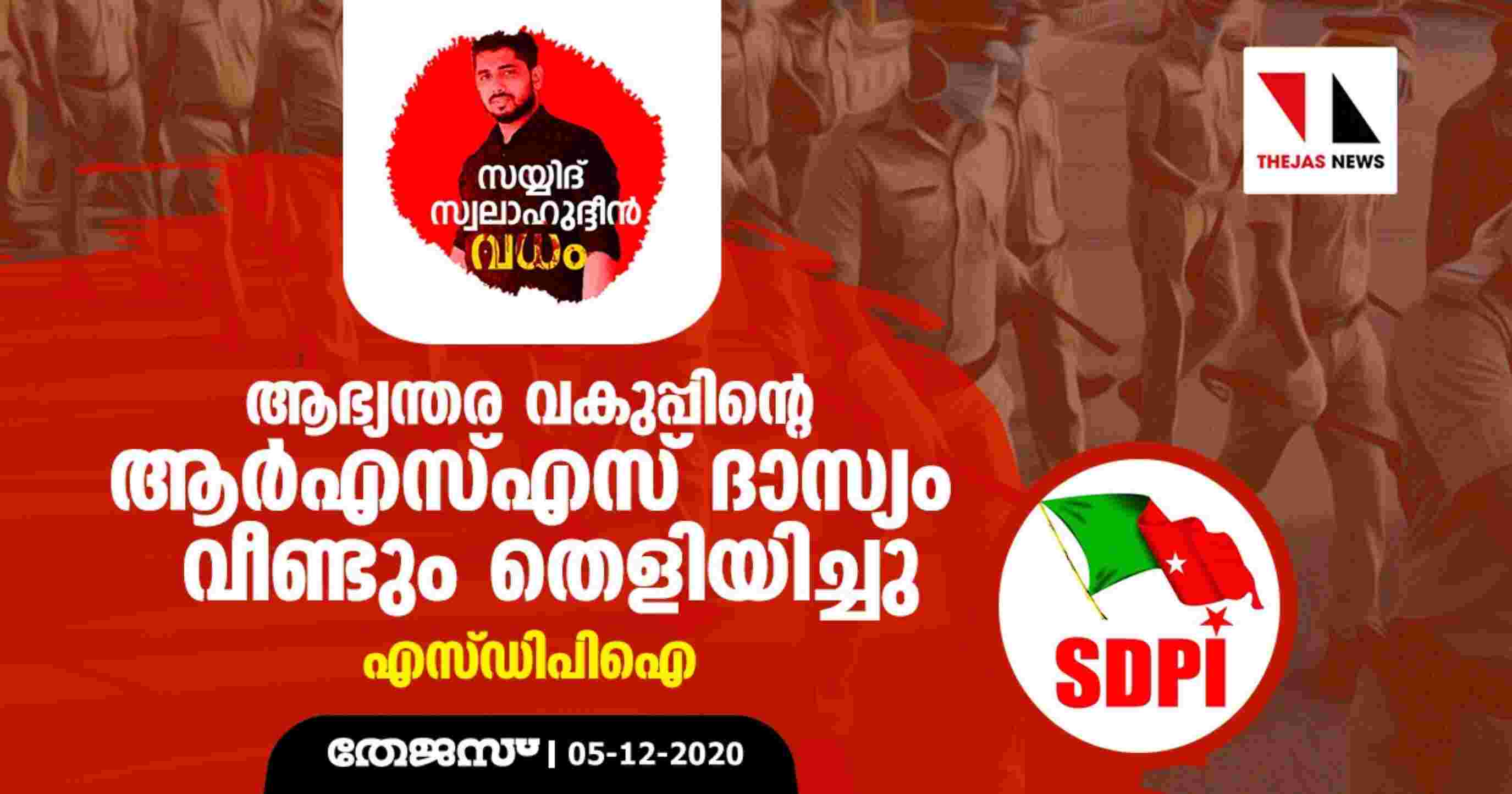 സയ്യിദ് സ്വലാഹുദ്ദീന് വധക്കേസ്: ആഭ്യന്തര വകുപ്പിന്റെ ആര്എസ്എസ് ദാസ്യം വീണ്ടും തെളിയിച്ചു- എസ്ഡിപിഐ