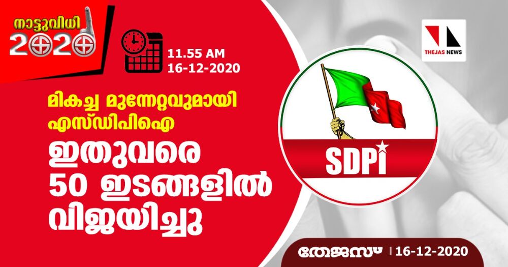 മികച്ച മുന്നേറ്റവുമായി എസ്ഡിപിഐ; ഇതുവരെ 50 ഇടങ്ങളില് വിജയിച്ചു
