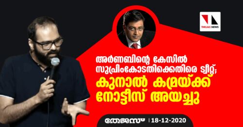 അര്ണബിന്റെ കേസില് സുപ്രീം കോടതിക്കെതിരേ ട്വീറ്റ്; കുനാല് കമ്രയ്ക്ക് നോട്ടിസ് അയച്ചു