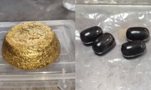 ഒരുകോടി രൂപയോളം വിലമതിക്കുന്ന സ്വര്ണമാണ് പിടികൂടിയത്. ഷാര്ജയില് നിന്നെത്തിയ ആളുടെ ശരീരത്തിന്റെ രഹസ്യഭാഗങ്ങളില് ഒളിപ്പിച്ച നിലയില് 736 ഗ്രാം സ്വര്ണം പിടികൂടി. ഷാര്ജയില് നിന്നെത്തിയ മറ്റൊരാളില് നിന്നും സ്വര്ണം പിടികൂടി. ക്യാപ്സ്യൂള് രൂപത്തിലെത്തിച്ച സ്വര്ണവും പിടികൂടിയിട്ടുണ്ട്. അതോടൊപ്പം ഒളിപ്പിച്ചു കടത്താന് ശ്രമിച്ച സൗദി റിയാലും പിടികൂടിയിട്ടുണ്ട്.
