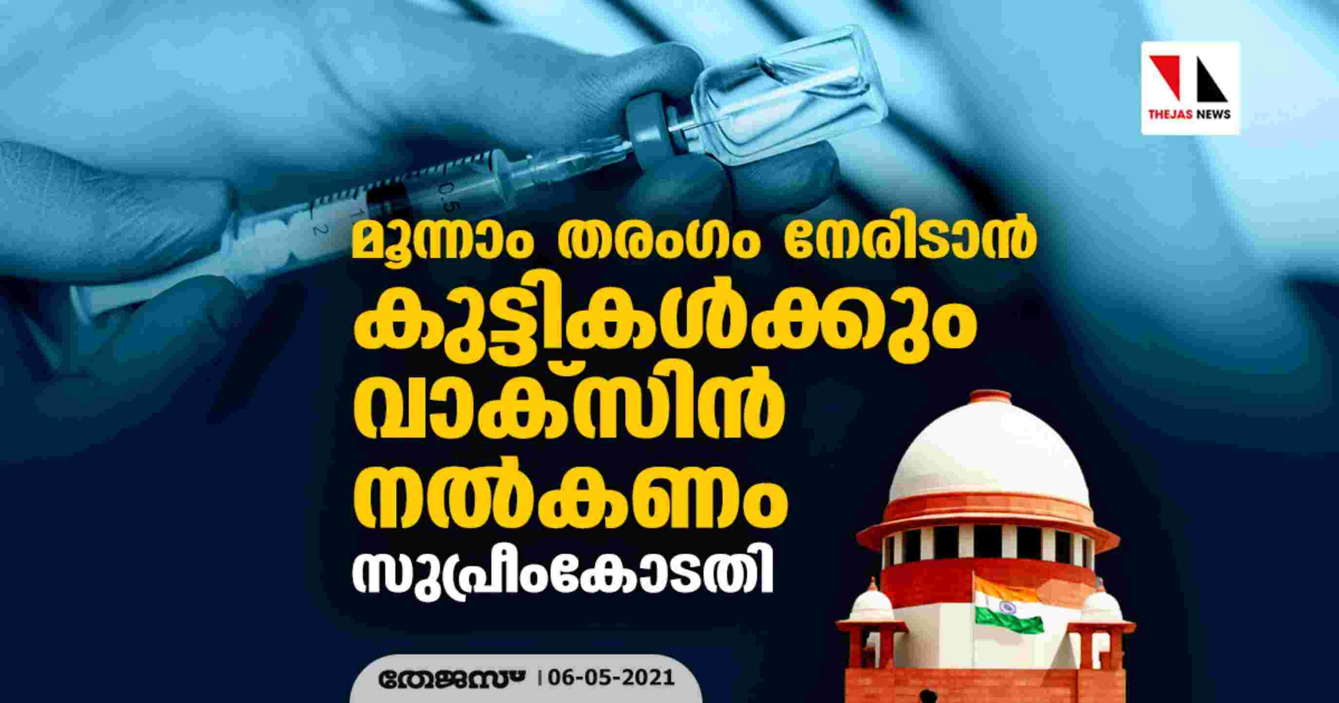 മൂന്നാം തരംഗം നേരിടാന് കുട്ടികള്ക്കും വാക്സിന് നല്കണം: സുപ്രീംകോടതി