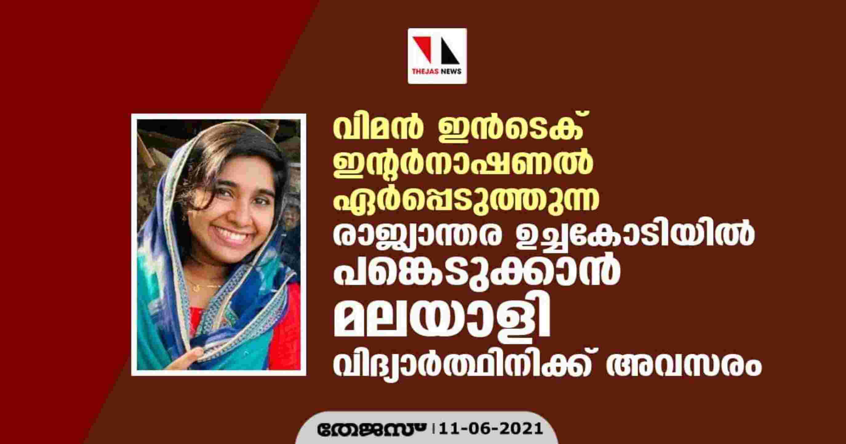 വിമൻ ഇൻടെക് ഇൻറർനാഷണൽ ഏർപ്പെടുത്തുന്ന രാജ്യാന്തര ഉച്ചകോടിയിൽ പങ്കെടുക്കാൻ മലയാളി വിദ്യാർത്ഥിനിക്ക് അവസരം