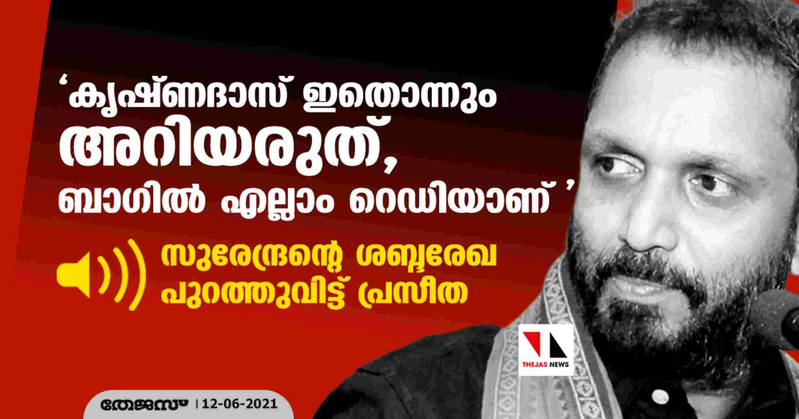 കൃഷ്ണദാസ് ഇതൊന്നും അറിയരുത്, ബാഗില് എല്ലാം റെഡിയാണ്'; സുരേന്ദ്രന്റെ ശബ്ദരേഖ പുറത്തുവിട്ട് പ്രസീത