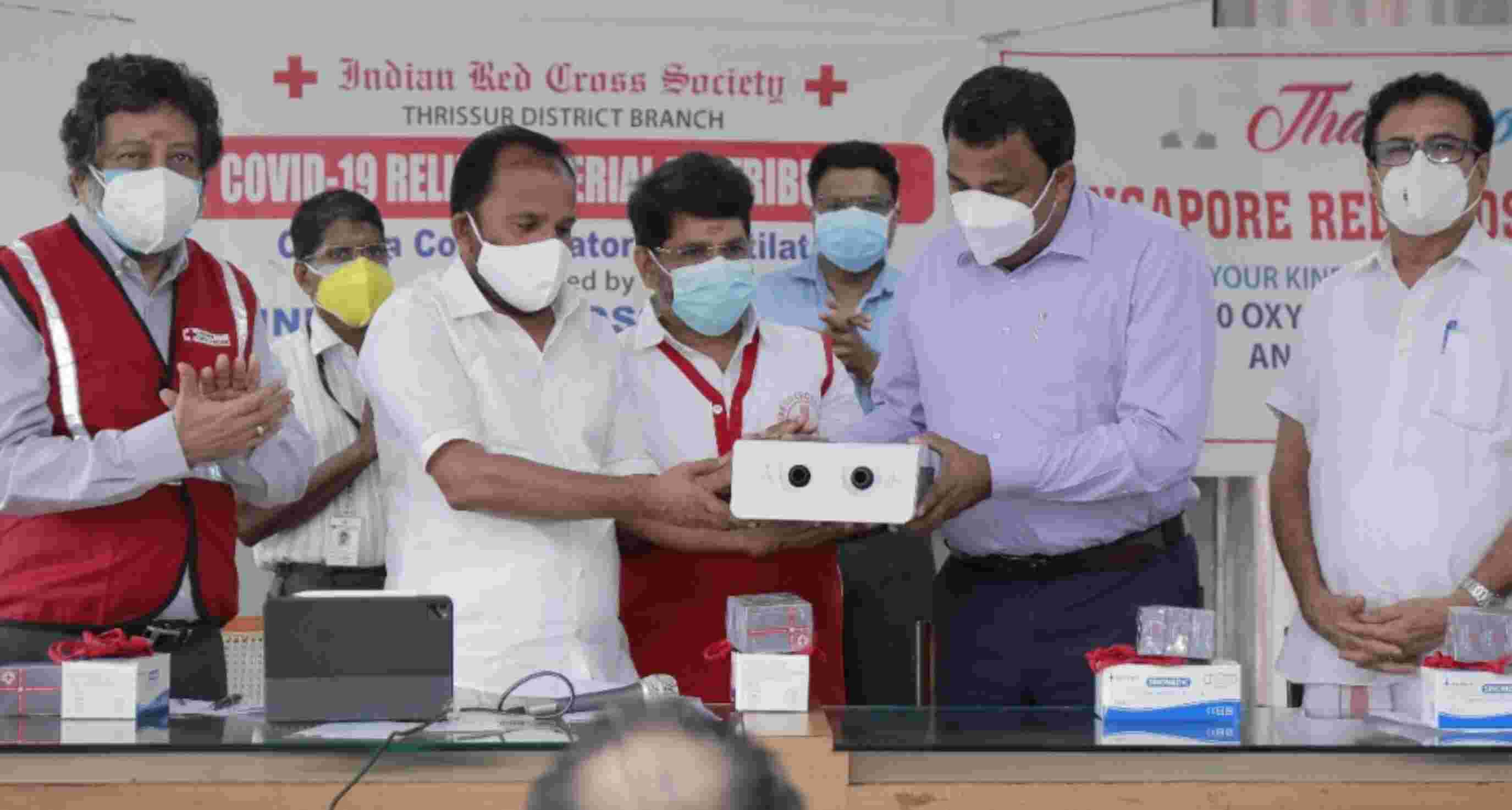 തൃശൂർ: ഇന്ത്യന് റെഡ് ക്രോസ് സൊസൈറ്റി തൃശൂർ ജില്ലാ ബ്രാഞ്ചിന്റെ ആഭിമുഖ്യത്തില് സിംഗപ്പൂര് റെഡ്ക്രോസ് സൊസൈറ്റിയുടെ സഹായത്തോടെ കൊവിഡ് - 19 പ്രതിരോധ പ്രവര്ത്തനങ്ങള്ക്കായി രണ്ട് കോടിയോളം രൂപ വിലമതിക്കുന്ന ഉപകരണങ്ങള് ജില്ലാ ആരോഗ്യ വകുപ്പിന് കൈമാറി. ജില്ലാ മെഡിക്കല് ഓഫീസില് വെച്ച് നടന്ന ചടങ്ങില് ജില്ലാ കലക്ടര് എസ്. ഷാനവാസ്, ജില്ലാ മെഡിക്കല് ഓഫീസര് ഡോ. കെ.ജെ റീന എന്നിവര് ചേര്ന്ന് തൃശൂര് എം.പി ടി.എന് പ്രതാപന്, കോര്പ്പറേഷന് മേയര് എം.കെ വര്ഗീസ് എന്നിവരില് നിന്ന് ഉപകരണങ്ങളായ എമര്ജന്സി വെന്റിലേറ്റര്, ഓക്സിജന് കോണ്സന്ഡ്രേറ്റര് എന്നിവ ഏറ്റുവാങ്ങി.