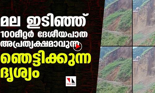 മലയോടൊപ്പം 100 മീറ്റർ റോഡ് ഇടിഞ്ഞ് ഇല്ലാതാവുന്ന ഞെട്ടൽ ദൃശ്യം