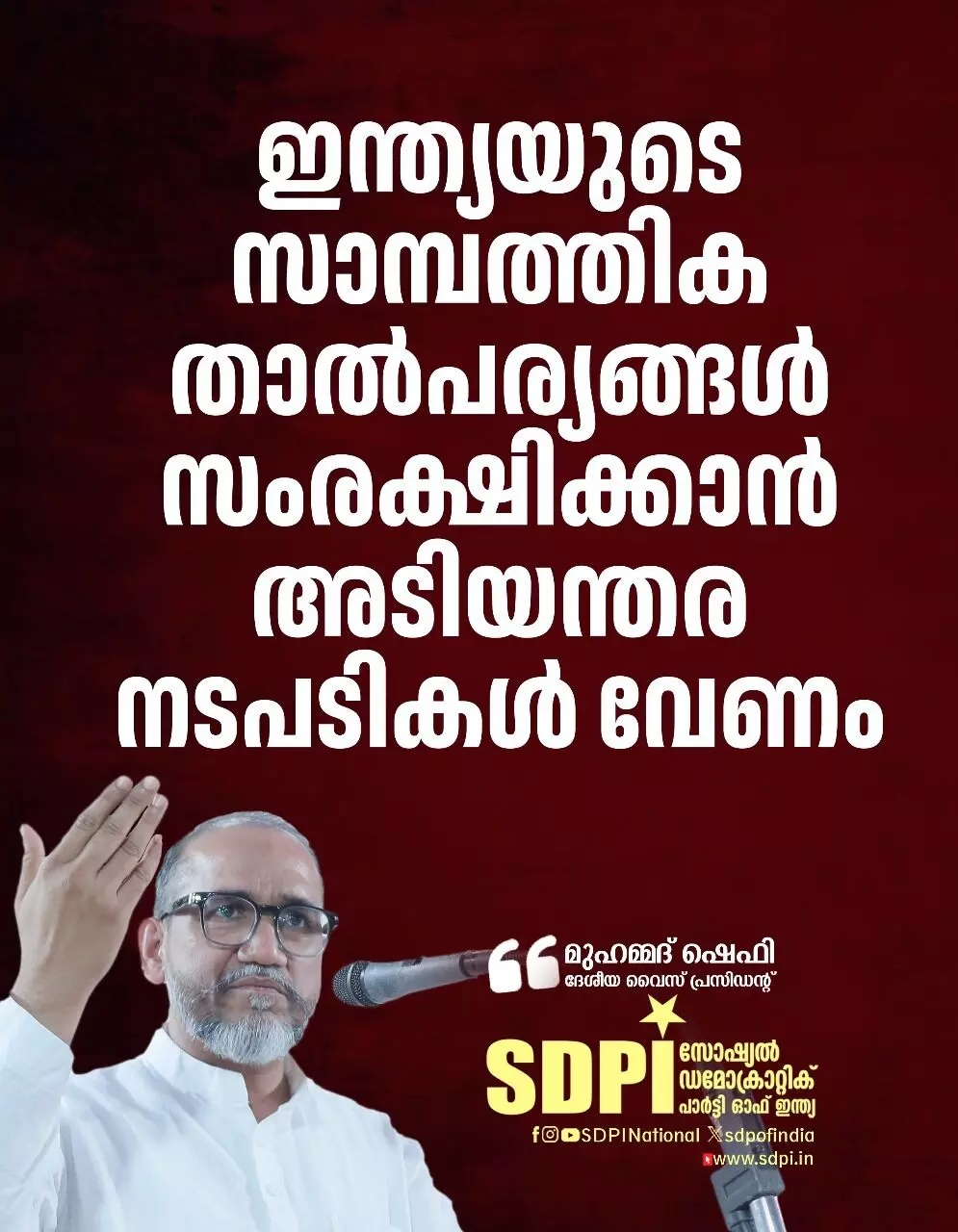 *ഇന്ത്യയുടെ സാമ്പത്തിക താൽപര്യങ്ങൾ സംരക്ഷിക്കാൻ അടിയന്തര നടപടികൾ വേണം : എസ്ഡിപിഐ*