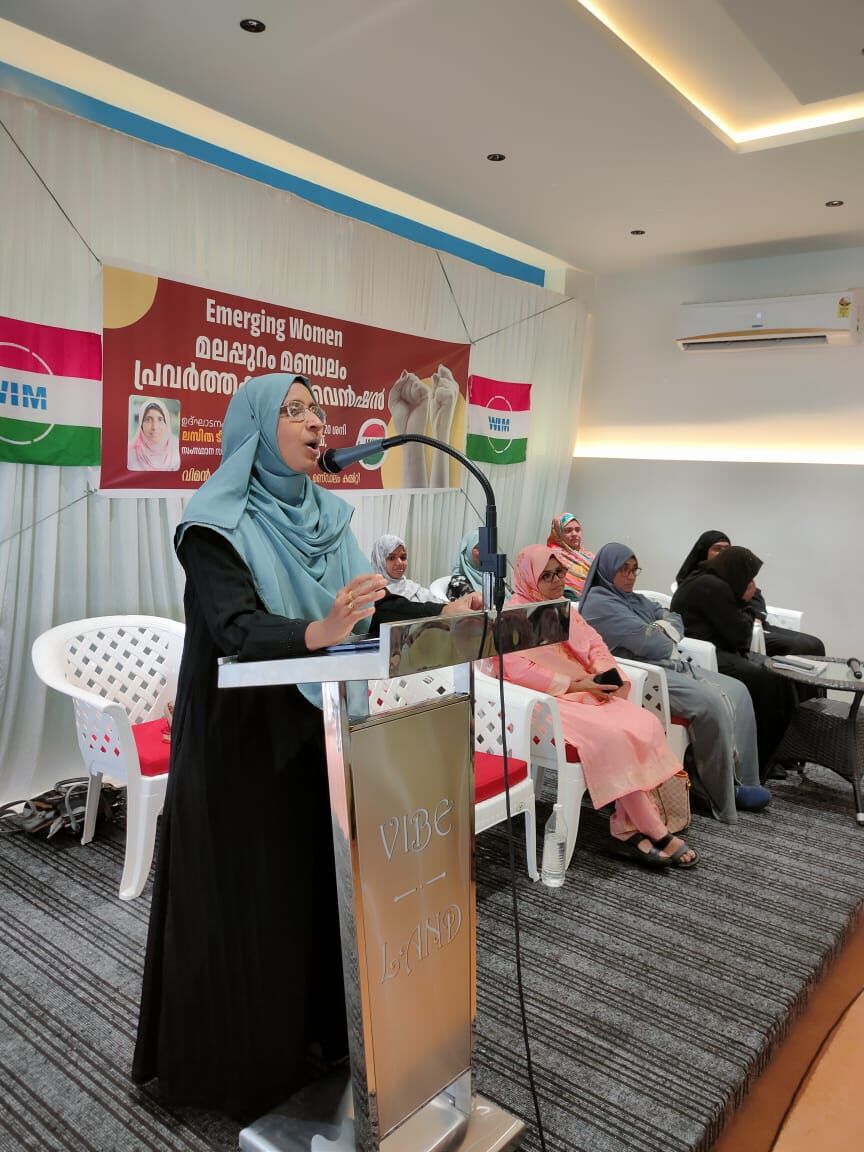 മലപ്പുറം : എമേർജിഗ് വിമൻ എന്ന തലക്കെട്ടിൽ വിമൻ ഇന്ത്യാ മൂവ്മെന്റ് മലപ്പുറം മണ്ഡലം പ്രവർത്തക കൺവെൻഷൻ പൂക്കോട്ടൂർ മൈലാടി വൈബ് ലാൻഡ് ഓഡിറ്റോറിയത്തിൽ ശ്രദ്ധേയമായ പങ്കാളിത്തത്തോടെ നടന്നു. സംഗമം സംസ്ഥാന സമിതിയഗം ലസിത ടീച്ചർ ഉദ്ഘാടനം ചെയ്തു. സ്ത്രീ ശാക്തീകരണത്തിന് വനിതാ സമൂഹം രാഗത്തിറങ്ങണമെന്നും ജനാധിപത്യ പ്രക്രിയയിൽ സ്ത്രീകൾ കൂടുതൽ ഇടപെടൽ നടത്തണമെന്നും ഉദ്ഘാടനം ചെയ്തു സംസാരിച്ച സംസ്ഥാന സമിതിയഗം ലസിത ടീച്ചർ പറഞ്ഞു. വിമൻ ഇന്ത്യ മൂവ്മെന്റ് മണ്ഡലം പ്രസിഡന്റ് ജുവൈരിയ ടീച്ചർ അധ്യക്ഷത വഹിച്ചു. മണ്ഡലം സെക്രട്ടറി നുഹൈമ മലപ്പുറം, SDPI ജില്ലാ കമ്മിറ്റിയംഗം ഹംസ തലകാപ്പ്, പികെ റംല ടീച്ചർ, റജീന ടീച്ചർ എസ്ഡിപിഐ മണ്ഡലം പ്രസിഡന്റ് നാസറുദ്ധീൻ ബാവ എന്നിവർ സംസാരിച്ചു.