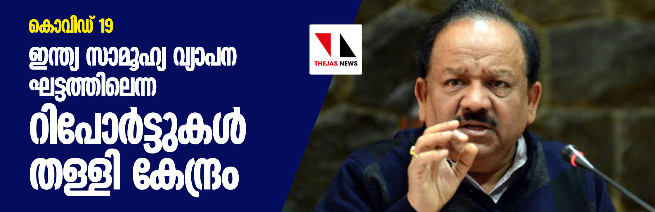 കൊവിഡ് 19: ഇന്ത്യ സാമൂഹിക വ്യാപന ഘട്ടത്തിലെന്ന റിപോര്ട്ടുകള് തള്ളി കേന്ദ്ര ആരോഗ്യമന്ത്രി