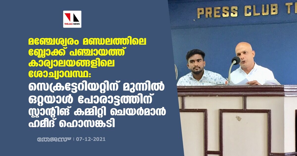 മഞ്ചേശ്വരം മണ്ഡലത്തിലെ ബ്ലോക്ക് പഞ്ചായത്ത് കാര്യാലയങ്ങളിലെ ശോച്യാവസ്ഥ: സെക്രട്ടേറിയറ്റിന് മുന്നില് ഒറ്റയാള് പോരാട്ടത്തിന് ഹമീദ് ഹൊസങ്കടി