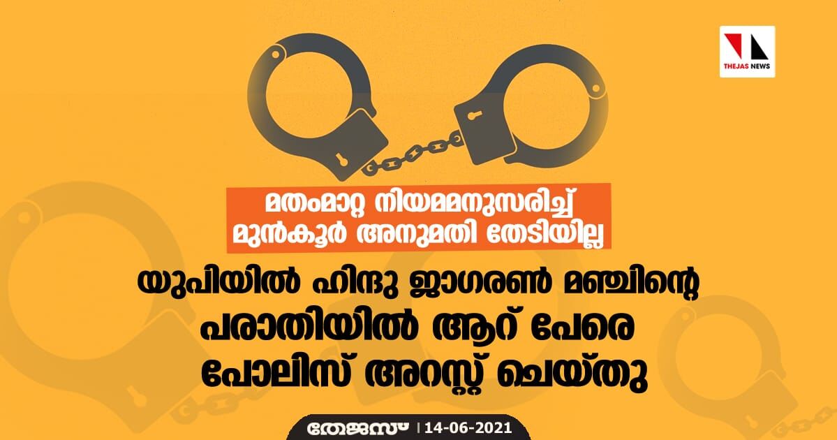മതംമാറ്റ നിയമമനുസരിച്ച് മുന്കൂര് അനുമതി തേടിയില്ല; യുപിയില് ഹിന്ദു ജാഗരണ് മഞ്ചിന്റെ പരാതിയില് ആറ് പേരെ പോലിസ് അറസ്റ്റ് ചെയ്തു