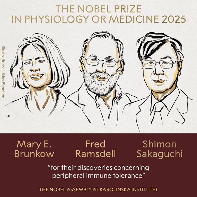 ന്യൂഡല്ഹി: വൈദ്യശാസ്ത്രത്തിനുള്ള നോബേല് പുരസ്കാരം പ്രഖ്യാപിച്ചു. പെരിഫറല് ഇമ്മ്യൂണ് ടോളറന്സിനെക്കുറിച്ചുള്ള കണ്ടെത്തലുകള്ക്കാണ് പുരസ്കാരം. മേരി ബ്രങ്കോ, ഫ്രെഡ് റാംസ്ഡെല്, ഷിമോണ് സകാഗുച്ചി എന്നിവര്ക്കാണ് പുരസ്കാരം. ഫിസിയോളജി അല്ലെങ്കില് മെഡിസിന് നോബല് സമ്മാനം എന്നറിയപ്പെടുന്ന ഈ ബഹുമതി 1901 നും 2024 നും ഇടയില് 229 നോബല് സമ്മാന ജേതാക്കള്ക്ക് നല്കിയിട്ടുണ്ട്.