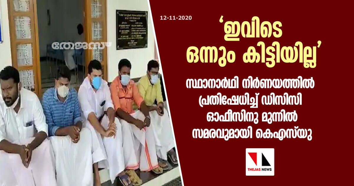 'ഇവിടെ ഒന്നും കിട്ടിയില്ല' : സ്ഥാനാര്ഥി നിര്ണയത്തില് പ്രതിഷേധിച്ച് ഡിസിസി ഓഫീസിനു മുന്നില് സമരവുമായി കെഎസ്യു