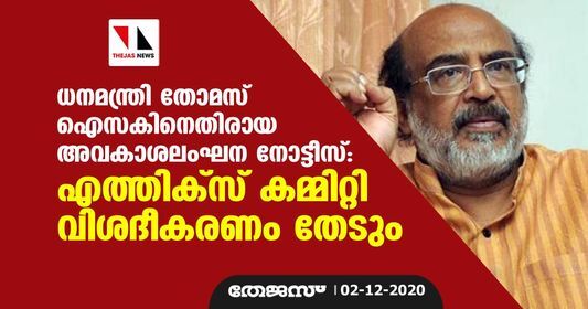 ധനമന്ത്രി തോമസ് ഐസകിനെതിരായ അവകാശലംഘന നോട്ടീസ്: എത്തിക്സ് കമ്മറ്റി വിശദീകരണം തേടും