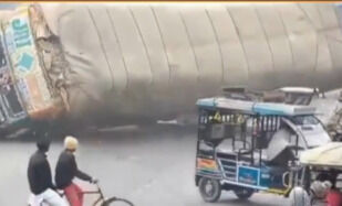 ട്രക്ക് ബൊലേറോ കാറിലേക്ക് മറിഞ്ഞ് ഒരു മരണം(വീഡിയോ)