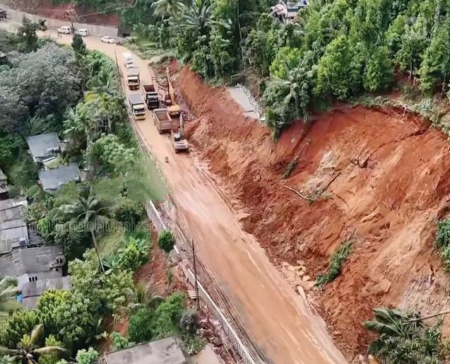 ദേശീയപാതയുടെ നിര്മാണത്തിനായി മണ്ണെടുത്തതിനെത്തുടര്ന്ന് 50 അടിയിലേറെ ഉയരത്തില് കട്ടിങ് ഉണ്ടായി. അതിനു മുകളില് അടര്ന്നിരുന്ന ഭാഗം ഇടിഞ്ഞ് പാതയിലേക്കും അടിഭാഗത്തുള്ള വീടുകളിലേക്കും പതിച്ചാണ് അപകടം. രണ്ടു വീടുകള് തകര്ന്നു. ഇതേ തുടര്ന്ന് പ്രദേശത്ത് വൈദ്യുതി ബന്ധം തകരാറിലായി. വെള്ളിയാഴ്ചയും ഇവിടെ മണ്ണിടിച്ചില് ഉണ്ടായതിനെ തുടര്ന്ന് 22 കുടുംബങ്ങളെ വൈകിട്ടോടെ മാറ്റി പാര്പ്പിച്ചതാണ് വന് ദുരന്തം ഒഴിവാകാന് കാരണമായത്. മണ്ണിടിച്ചില് ഭീഷണി തുടര്ന്ന് ബിജുവും സന്ധ്യയും തറവാട്ട് വീട്ടിലേക്ക് മാറിയിട്ടും രേഖകള് എടുക്കാന് വേണ്ടിയാണ് വീട്ടിലേക്ക് എത്തിയത്. ബിജുവും സന്ധ്യം വീടിന്റെ ഹാളില് നില്ക്കുമ്പോഴാണ് അപകടമുണ്ടായത്. മണ്ണിടിഞ്ഞുവീണ് വീടിന്റെ മേല്ക്കൂര താഴേയ്ക്ക് പതിച്ച സ്ഥിതിയിലാണ്. തകര്ന്ന വീടിന്റെ കോണ്ക്രീറ്റ് പാളികള് മണ്ണുമാന്തി യന്ത്രം ഉപയോഗിച്ച് മാറ്റിയാണ് കുടുങ്ങി കിടക്കുന്നവരെ പുറത്തെടുത്തത്. അശാസ്ത്രിയ മണ്ണൊടുക്കലാണ് അപകട കാരണമെന്നാണ് വിലയിരുത്തല്.