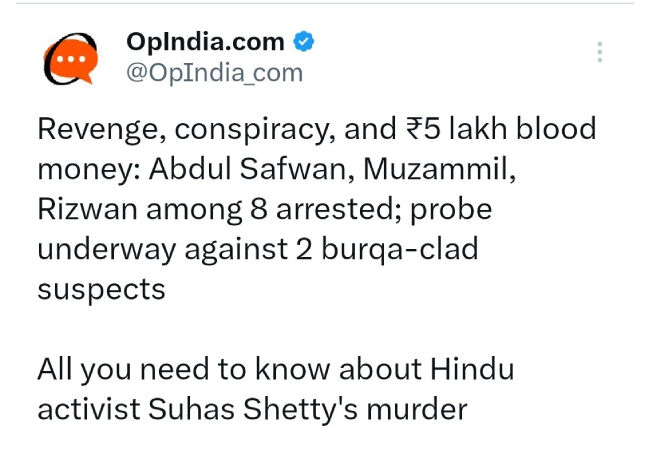 മംഗളൂരു: ഗുണ്ടാ നേതാവും ബജ്റങ് ദൾ നേതാവുമായ സുഹാസ് ഷെട്ടിയുടെ കൊലപാതകത്തിലെ പ്രതികളായ ഹിന്ദുക്കളുടെ പേര് തലക്കെട്ടിൽ നിന്നും ഒഴിവാക്കി ഹിന്ദുത്വ മാധ്യമമായ ഒപ് ഇന്ത്യ. ഇന്ത്യയിലേയും വിവിധ രാജ്യങ്ങളിലെയും വർഗീയവാദികൾ വാർത്താ സ്രോതസായി ഉപയോഗിക്കുന്ന വെബ്സൈറ്റുകളിൽ ഒന്നാണിത്. സുഹാസ് ഷെട്ടിയുടെ കൊലപാതകത്തെ ഹിന്ദുക്കൾക്കെതിരായ ആക്രമണമായി ചിത്രീകരിക്കാനും അത് ലോകം മുഴുവൻ പ്രചരിപ്പിക്കാനുമാണ് ഒപ്ഇന്ത്യ ശ്രമിച്ചത്. ആൾട്ട് ന്യൂസ് സഹസ്ഥാപകൻ മുഹമ്മദ് സുബൈറാണ് പേര് ഒഴിവാക്കിയത് ചൂണ്ടിക്കാട്ടിയത്.