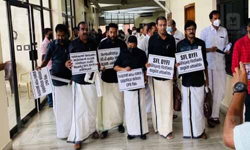 കറുത്ത വസ്ത്രങ്ങള് ധരിച്ചാണ് പ്രതിപക്ഷ എംഎല്എമാര് സഭയിലെത്തിയത്. എസ്എഫ്ഐ ഗുണ്ടായിസത്തിനെതിരെ പ്രതിഷേധമെന്നായിരുന്നു പ്രതിപക്ഷം അറിയിച്ചത്. പ്ലക്കാര്ഡുകളും ബാനറുകളുമായി ചോദ്യോത്തരവേള ആരംഭിച്ചപ്പോള് തന്നെ പ്രതിപക്ഷം എഴുന്നേറ്റു.ചോദ്യോത്തരവേള തടസപ്പെടുത്തരുതെന്ന സ്പീക്കറുടെ അഭ്യര്ഥന തള്ളി പ്രതിപക്ഷാംഗങ്ങള് നടുത്തളത്തിലിറങ്ങിയതോടെ സഭ നിര്ത്തിവച്ചു.