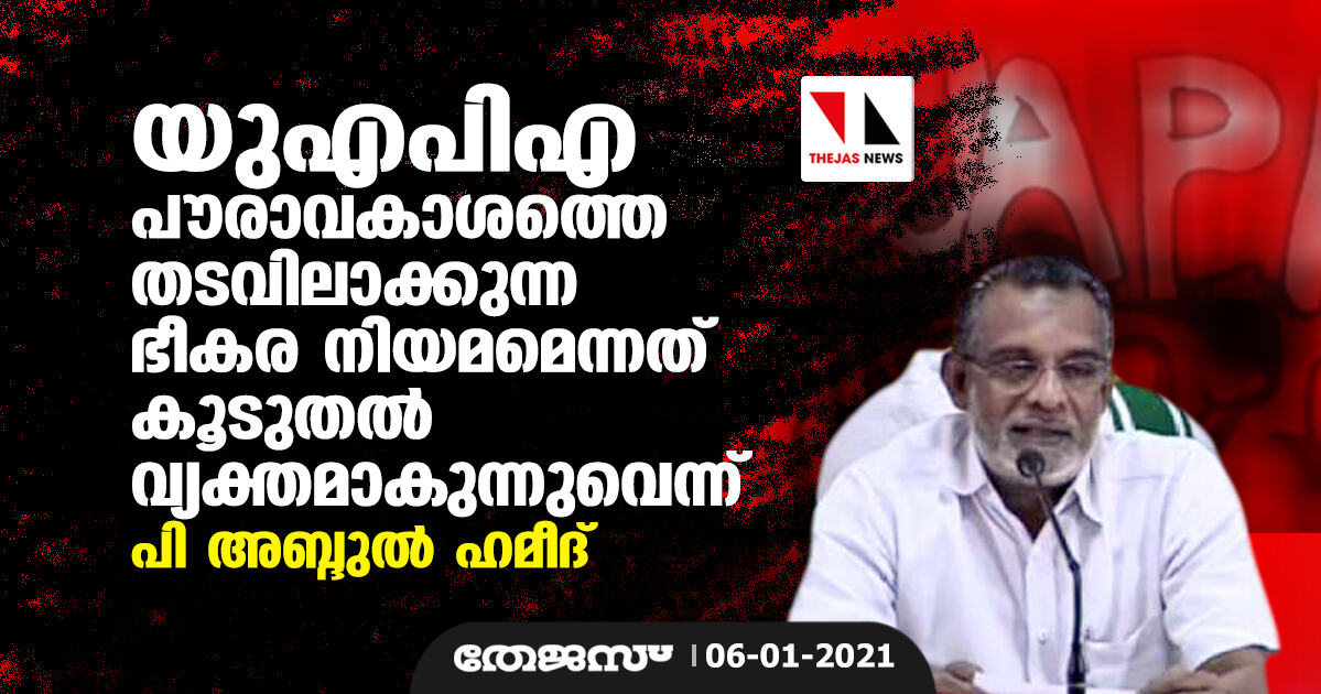 യു.എ.പി.എ പൗരാവകാശത്തെ തടവിലാക്കുന്ന ഭീകര നിയമമെന്നത് കൂടുതല് വ്യക്തമാകുന്നുവെന്ന് പി അബ്ദുല് ഹമീദ്