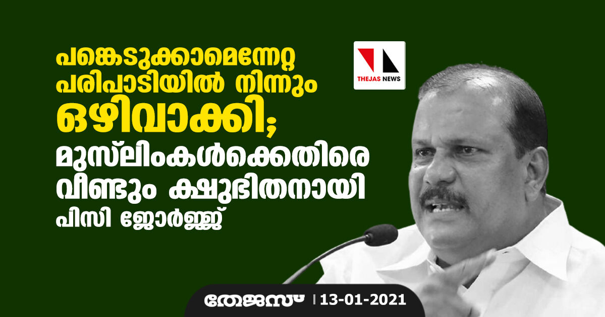 പങ്കെടുക്കാമെന്നേറ്റ പരിപാടിയില് നിന്നും ഒഴിവാക്കി; മുസ്ലിംകള്ക്കെതിരേ വീണ്ടും ക്ഷുഭിതനായി പി സി ജോര്ജ്ജ്