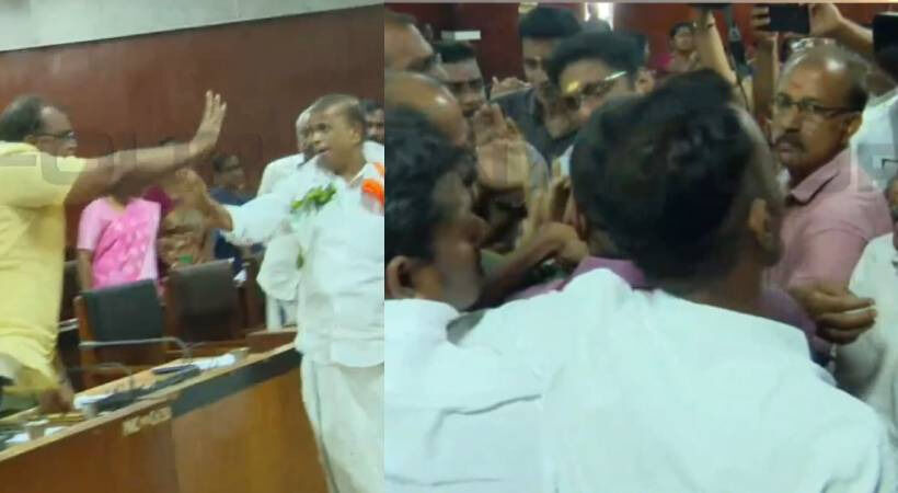 പാലക്കാട് നഗരസഭാ കൗണ്സിലില് കൈയാങ്കളി; സംഭവം ബിജെപി-എല്ഡിഎഫ് കൗണ്സിലര്മാര് തമ്മില്