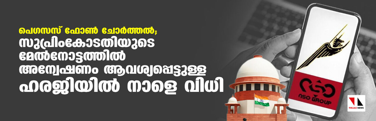 പെഗസസ് ഫോണ് ചോര്ത്തല്; സുപ്രിംകോടതിയുടെ മേല്നോട്ടത്തില് അന്വേഷണം ആവശ്യപ്പെട്ടുള്ള ഹരജിയില് നാളെ വിധി