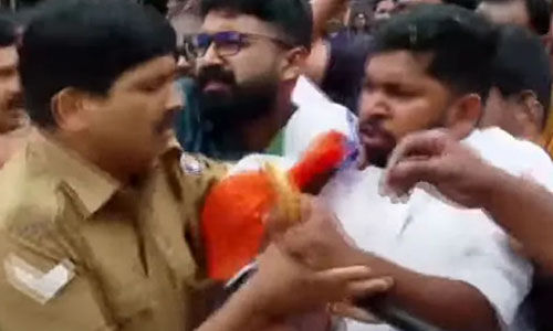 യുവാവ് ബസ് ഇടിച്ചു മരിച്ച സംഭവം; പ്രതിഷേധത്തിനിടെ പോലിസ് ജീപ്പിന് മുകളില് റീത്ത് വയ്ക്കാന് ശ്രമം