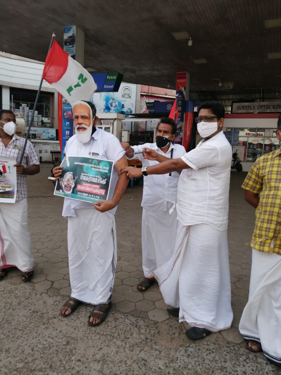 പെട്രോള് വിലവര്ദ്ധനവ്; നാഷണല് യൂത്ത് ലീഗ് മോദിക്ക് വാക്സിന് എടുത്തു പ്രതിഷേധിച്ചു