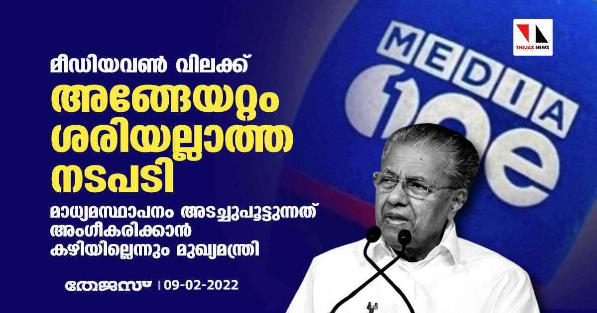 മീഡിയവണ് വിലക്ക്: അങ്ങേയറ്റം ശരിയല്ലാത്ത നടപടി; ഒരു മാധ്യമസ്ഥാപനം അടച്ചുപൂട്ടുന്നത് അംഗീകരിക്കാന് കഴിയില്ലെന്നും മുഖ്യമന്ത്രി