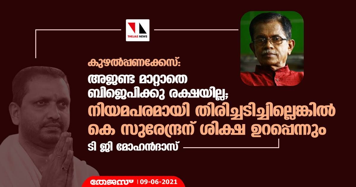 കുഴല്പ്പണക്കേസ്: അജണ്ട മാറ്റാതെ ബിജെപിക്കു രക്ഷയില്ല; നിയമപരമായി തിരിച്ചടിച്ചില്ലെങ്കില് കെ സുരേന്ദ്രന് ശിക്ഷ ഉറപ്പെന്നും ടി ജി മോഹന്ദാസ്