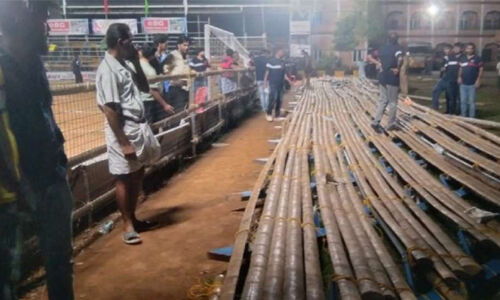 കോതമംഗലത്ത് ഫുട്ബോള് ഗ്യാലറി തകര്ന്നു വീണ സംഭവം; സംഘാടകര്ക്കെതിരെ കേസ് (വീഡിയോ)