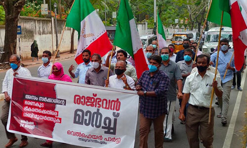 പ്രതിഷേധ പരിപാടിയില് വെല്ഫെയര് പാര്ട്ടി ജില്ലാ പ്രസിഡന്റ് എന്.എം അന്സാരി, അഡ്വ. അനില്കുമാര്, മധു കല്ലറ, മുംതാസ് ബീഗം, അയൂബ് ഖാന് തുടങ്ങിയവര് സംസാരിച്ചു. മ്യൂസിയം ജംഗ്ഷനില് നിന്നും ആരംഭിച്ച പ്രതിഷേധ മാര്ച്ച് രാജ്ഭവനു മുന്നില് പോലിസ് തടഞ്ഞു.
