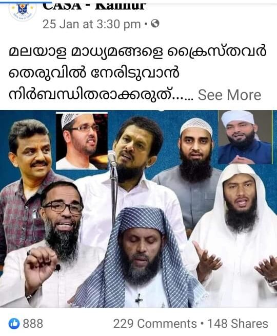 കലാപത്തിന് കോപ്പുകൂട്ടി 'കാസ'; കണ്ണടച്ച് പോലിസും സര്ക്കാരും