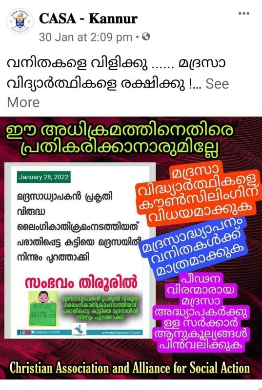കാസയുടെ ഫേസ് ബുക്ക് പേജില് നിന്ന്