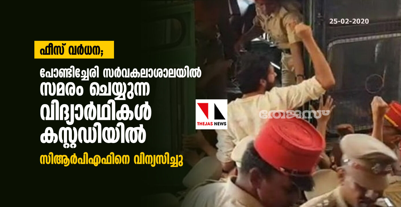 ഫീസ് വര്ധന; പോണ്ടിച്ചേരി സര്വകലാശാലയില് സമരം ചെയ്യുന്ന വിദ്യാര്ഥികള് കസ്റ്റഡിയില്; സിആര്പിഎഫിനെ വിന്യസിച്ചു