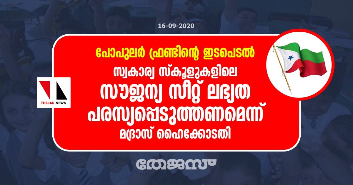 പോപുലര് ഫ്രണ്ടിന്റെ ഇടപെടല്: സ്വകാര്യ സ്കൂളുകളിലെ സൗജന്യ സീറ്റ് ലഭ്യത പരസ്യപ്പെടുത്തണമെന്ന് മദ്രാസ് ഹൈക്കോടതി