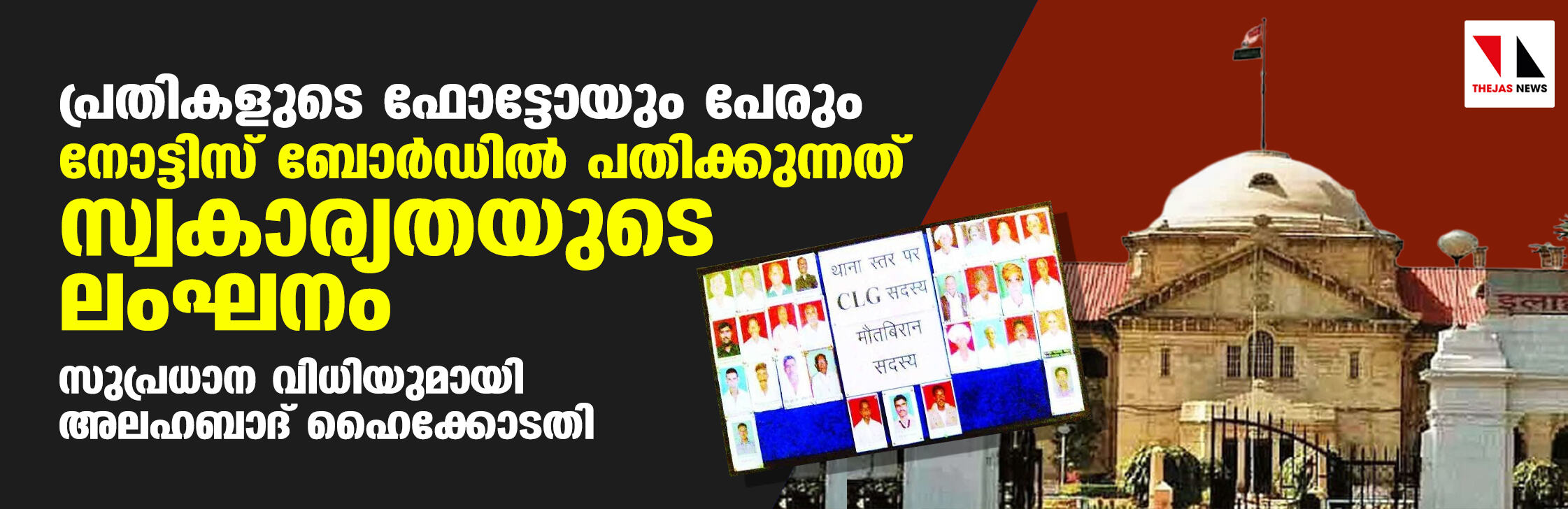 പ്രതികളുടെ ഫോട്ടോയും പേരും പോലിസ് സ്റ്റേഷന് നോട്ടിസ് ബോര്ഡില് പതിക്കുന്നത് സ്വകാര്യതയുടെ ലംഘനം: സുപ്രധാന വിധിയുമായി അലഹബാദ് ഹൈക്കോടതി