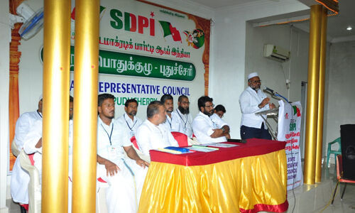 യോഗം യോഗം എസ്ഡിപിഐ ദേശീയ വൈസ് പ്രസിഡന്റ് ദഹ്ലാന് ബാഖവി ഉദ്ഘാടനം ചെയ്തു. എസ്ഡിപിഐ സംസ്ഥാന പ്രസിഡന്റ് അഡ്വ. ജെ. മുഹമ്മദ് ബറാകത്തുള്ള അധ്യക്ഷത വഹിച്ചു. എസ്ഡിപിഐ ദേശീയ ജനറല് സെക്രട്ടറി അബ്ദുല് മജീദ് കെ എച്ച് മുഖ്യപ്രഭാഷണം നടത്തി. എസ്ഡിപിഐ സംസ്ഥാന വര്ക്കിംഗ് കമ്മിറ്റി മെമ്പര് പി. അബ്ദുള്ള നന്ദി പറഞ്ഞു.