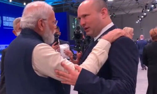 ഗ്ലാസ്ഗൊ: ഇന്ത്യന് പ്രധാനമന്ത്രി നരേന്ദ്ര മോദി ഇസ്രായേല് പ്രധാനമന്ത്രി നഫ്തലി ബെന്നറ്റുമായി കൂടിക്കാഴ്ച നടത്തി. പ്രധാനമന്ത്രി പദത്തിലെത്തിയ ശേഷമുള്ള ഇരുവരുടെയും ആദ്യ കൂടിക്കാഴ്ചയാണ് തിങ്കളാഴ്ച നടന്നത്. സിഒപി 26 ഉച്ചകോടിക്കിടയിലാണ് ഇരുവരും പരസ്പരം കണ്ടത്.