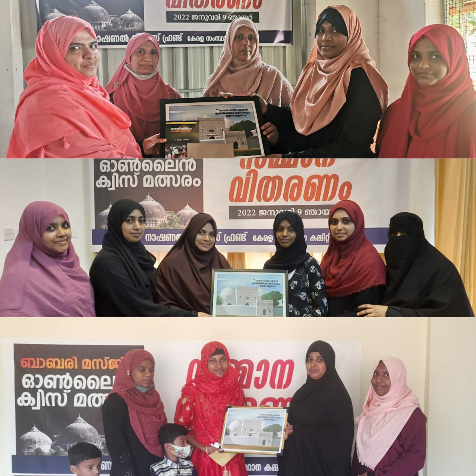 ബാബരി മസ്ജിദ് ക്വിസ് മല്സര വിജയികള്ക്ക് സമ്മാനങ്ങള് വിതരണം ചെയ്തു